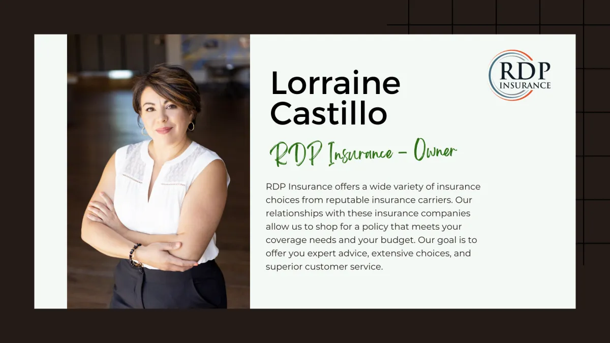 Lorraine has always been very efficient, great to work with and very friendly. She has always help me with my car insurance for the past 2 1/2 years. She always keeps me informed with any changes and provides quotes. I would definitely recommend her and RDP Insurance!